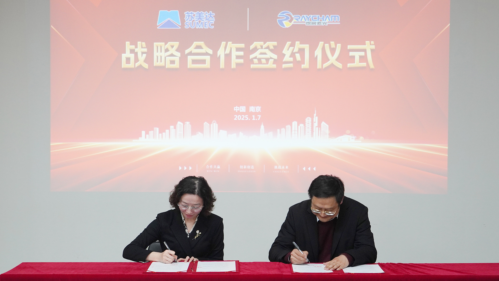 1月7日,南京中科煜宸激光技術有限公司(以下簡稱“中科煜宸”)與蘇美達國際技術貿易有限公司(以下簡稱“蘇美達”)簽訂戰(zhàn)略合作協(xié)議。雙方就激光智能制造設備海外市場開拓、出口業(yè)務合作等領域開展全方位合作。蘇美達殷文蘭與中科煜宸CEO邢飛出席簽約儀式。